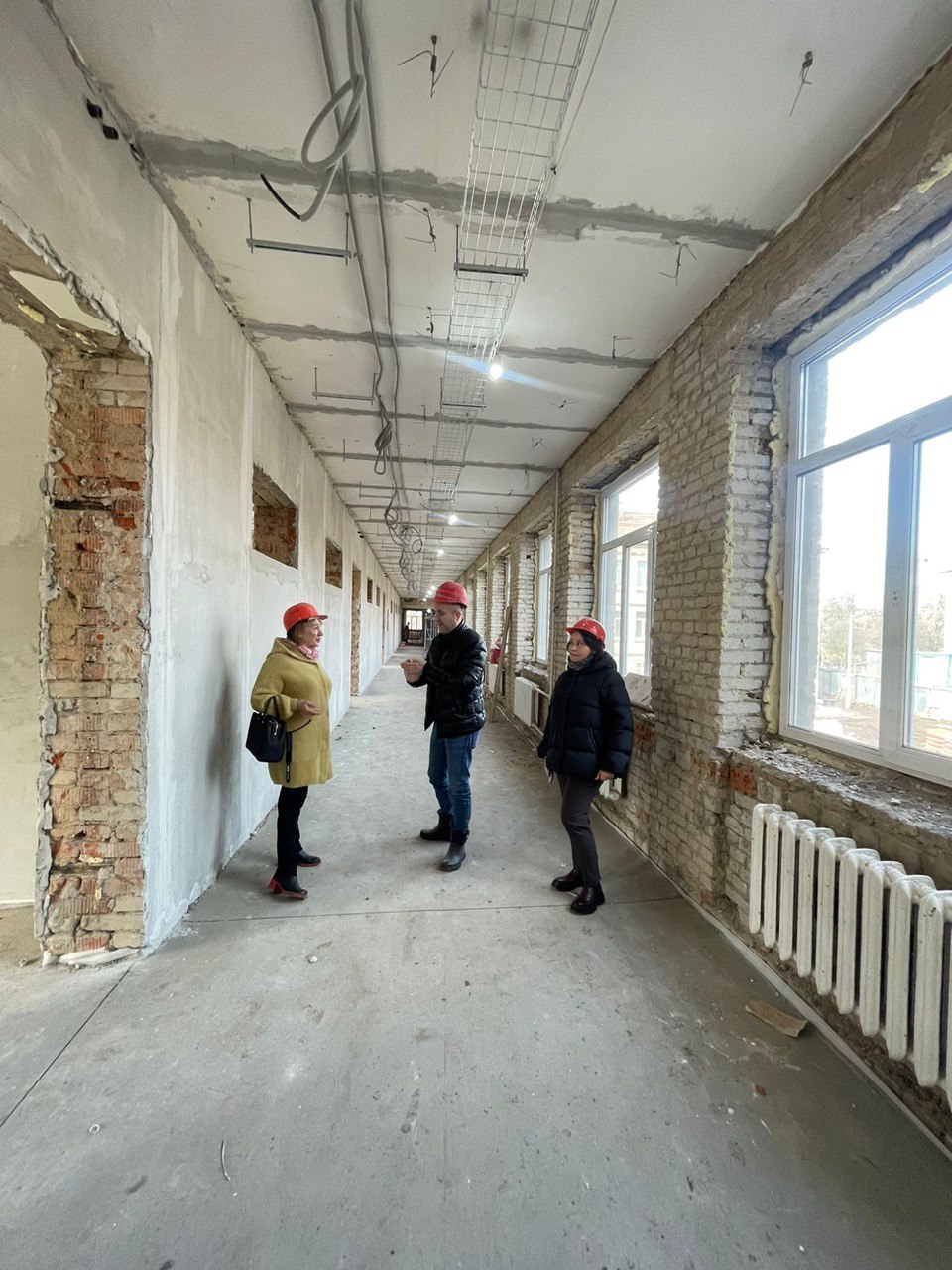 этажах школы проведена шпатлёвка стен и нанесена штукатурка. Произведена подготовка чернового пола и бетонная стяжка для укладки напольных покрытий. В ближайшее дни рабочие приступят к монтажу инженерных сетей, чистовой отделке и кровельным работам школы.