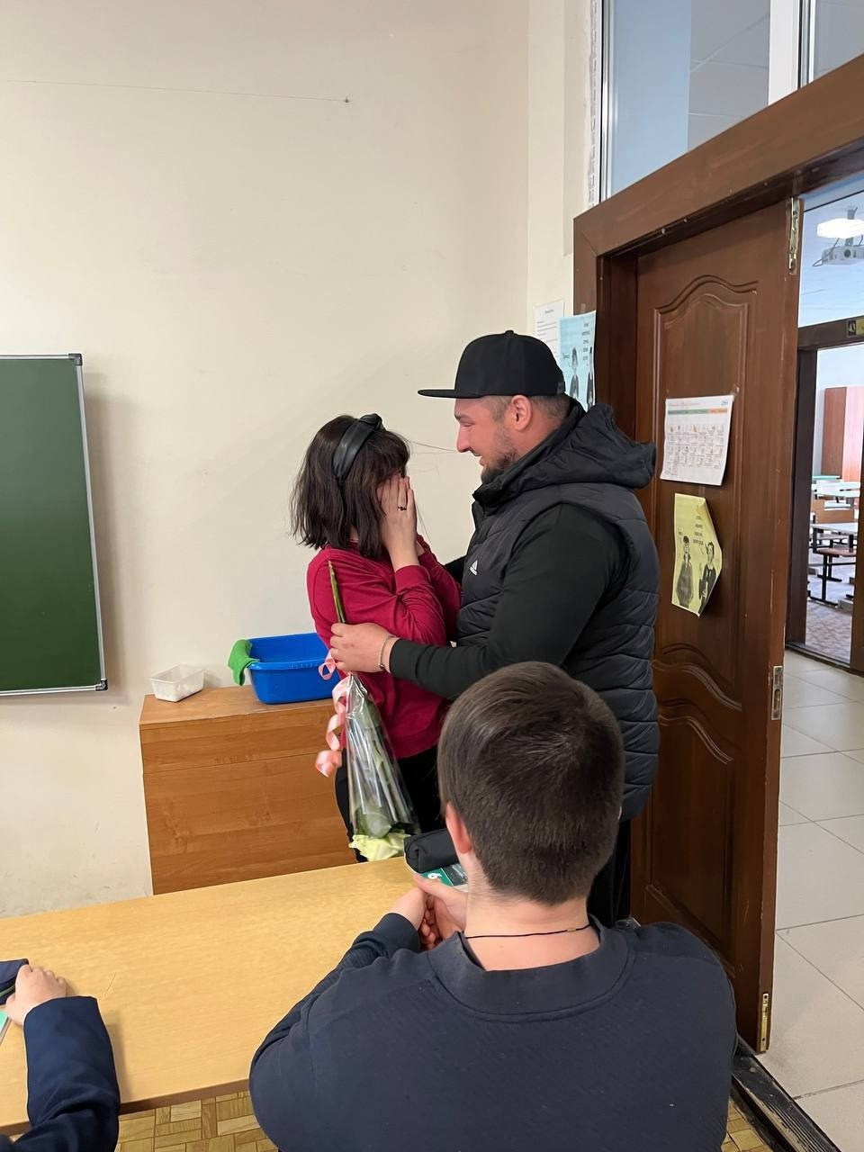 В спецоперации он участвует практически с самого её начала. Отец и дочь встретились после долгой разлуки. Трогательная встреча вызвала слёзы и у одноклассников, и у педагогов.