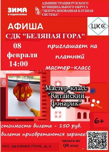 Сельский дом культуры «Беляная Гора» приглашает всех желающих на мастер-класс «Китайский фонарик» 8 февраля в 14.00.
