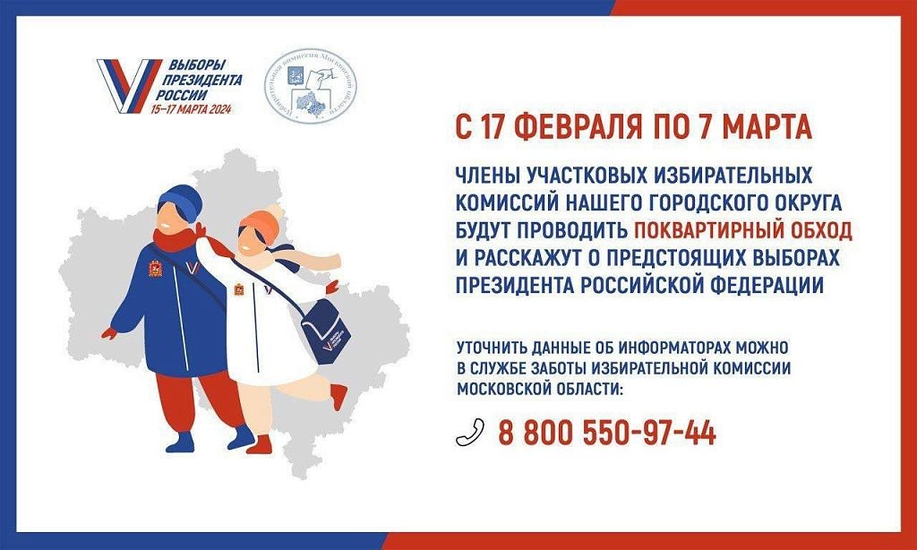С 17 февраля по 7 марта в Московской области будет проходить адресное информирование граждан о выборах Президента