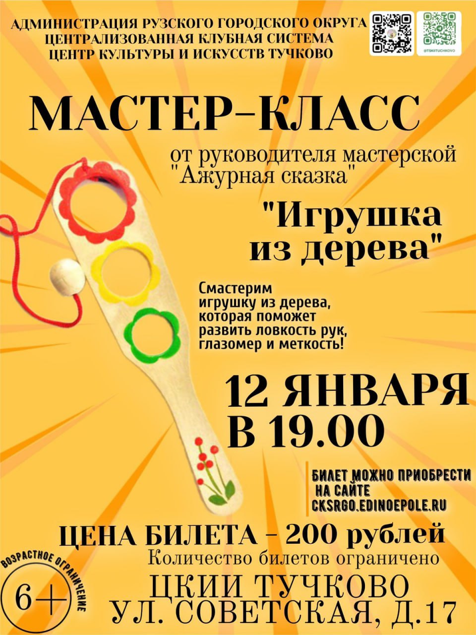12 января в Тучковском центре культуры и искусств Рузского городского округа состоится мастер-класс "Игрушка из дерева".