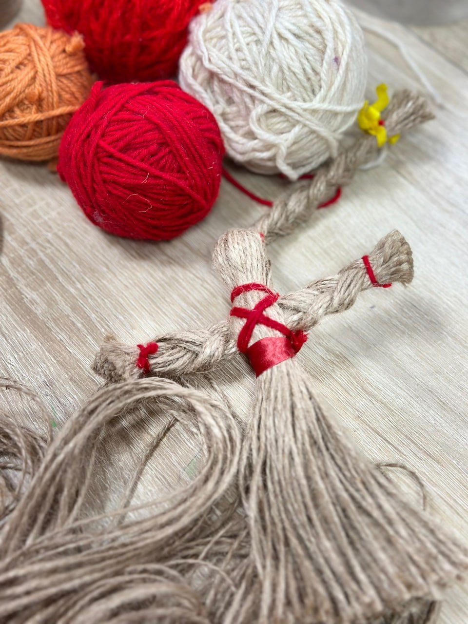 "В Масленицу традиционно всегда создавали куколок и делали их из соломы или сена, - сообщила она. - А в наше время принято их делать из шерстяных ниток, заплетая им длинные косы и подвязывая атласным лентами. Получились очень замечательные куколки!"