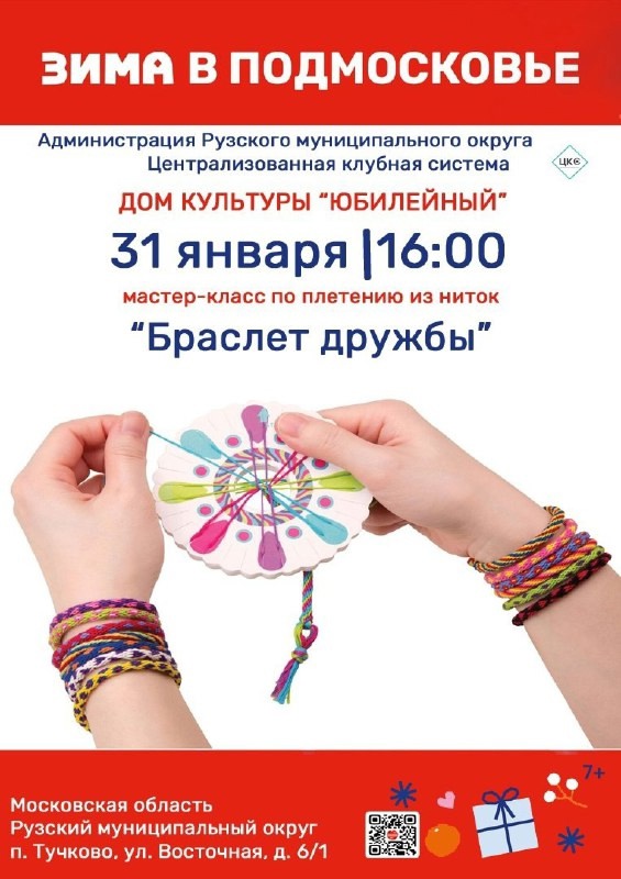 Дом культуры «Юбилейный» приглашает всех желающих на мастер-класс «Браслет дружбы», плетение из ниток, 31 января в 16.00.