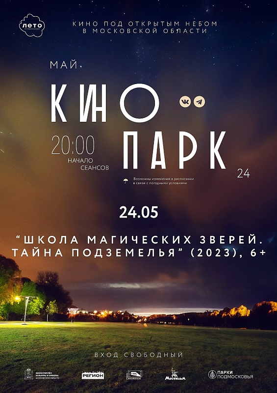 Проект «Кинопарк» создан в 2016 году при поддержке областного правительства и Министерства культуры и туризма Московской области. Это бесплатные уличные показы кинофильмов на больших экранах под открытым небом на парковых и других открытых площадках Подмосковья. В репертуаре проекта – лучшие современные российские картины, анимационные фильмы и, конечно, классика советского кинематографа.