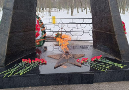 Жители Лобни несут цветы к мемориалу "Звонница"