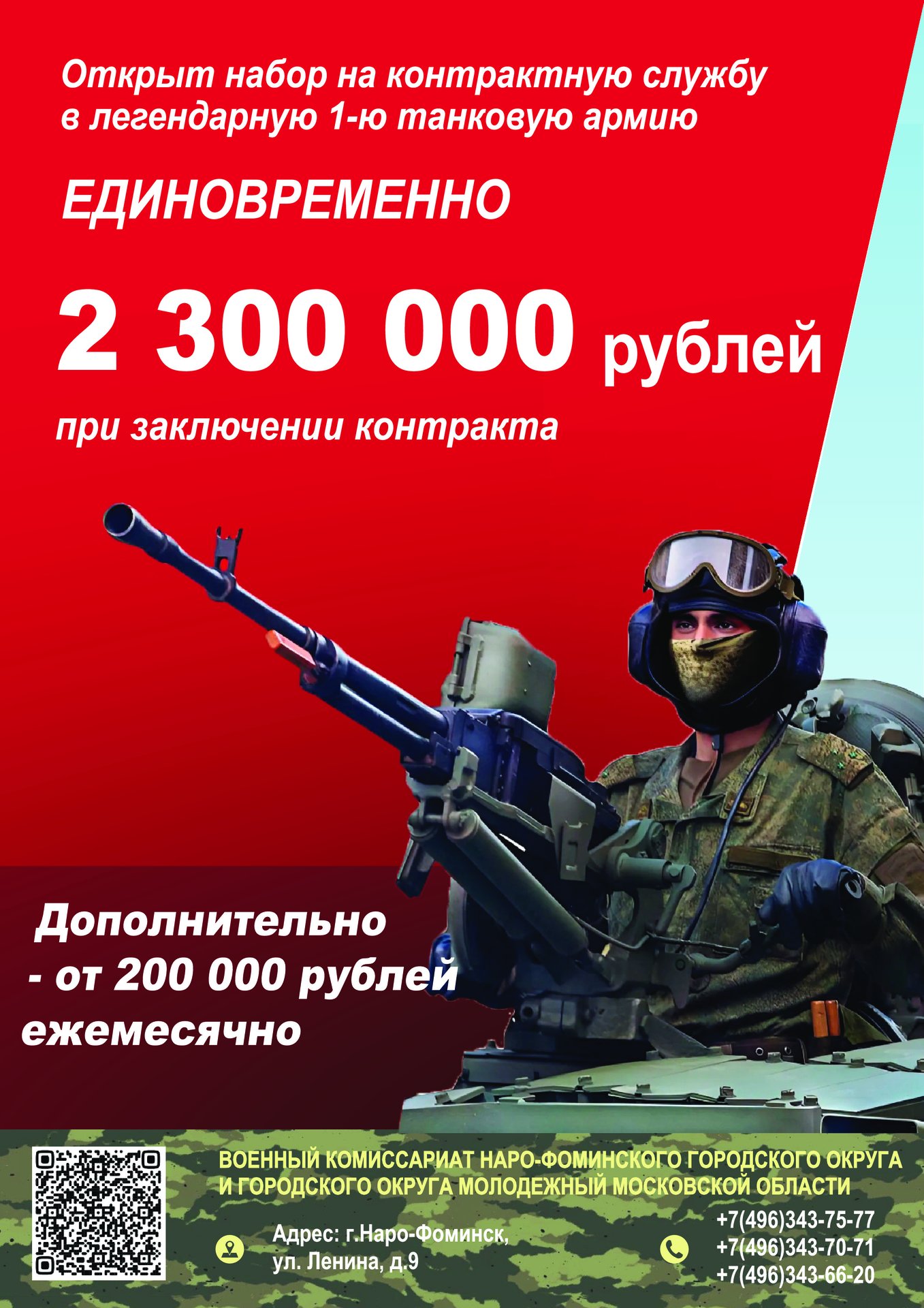 Жители Наро-Фоминского городского округа приглашаются на службу по контракту! В рамках программы по набору военнослужащих, каждому контрактнику предложат единовременные выплаты, которые помогут улучшить их финансовое положение.